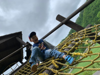 大きなトランポリンがあり、様々な遊びを楽しんでいた子どもたち。